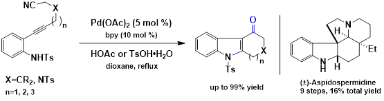 2. “Pd(II)-Catalyzed One-Step Construction of Cycloalkane-Fused Indoles and Its Application in Formal Synthesis of (±)-Aspidospermidine.”
